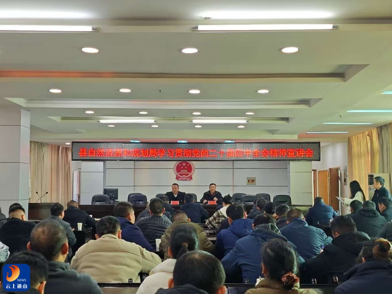云上通山报道:(通讯员 阮云辉 吴正光)为深入学习贯彻党的二十届四中全会精神,推动全会精神在自然资源和规划领域落地生根,12月26日上午,县自然资源和规划局召开学习贯彻党的二十届四中全会精神专题宣讲会。局党组书记、局长胡波以《以党的二十届四中全会精神为指引,奋力开创自然资源和规划事业新局面》为主题,围绕党的二十届四中全会的重大意义、精神实质和核心要义,结合县域经济社会发展和自然资源规划工作实际,进行了系统阐述和深入解读。局领导班子成员、机关全体党员、各乡镇自然资源和规划所负责人参加会议。