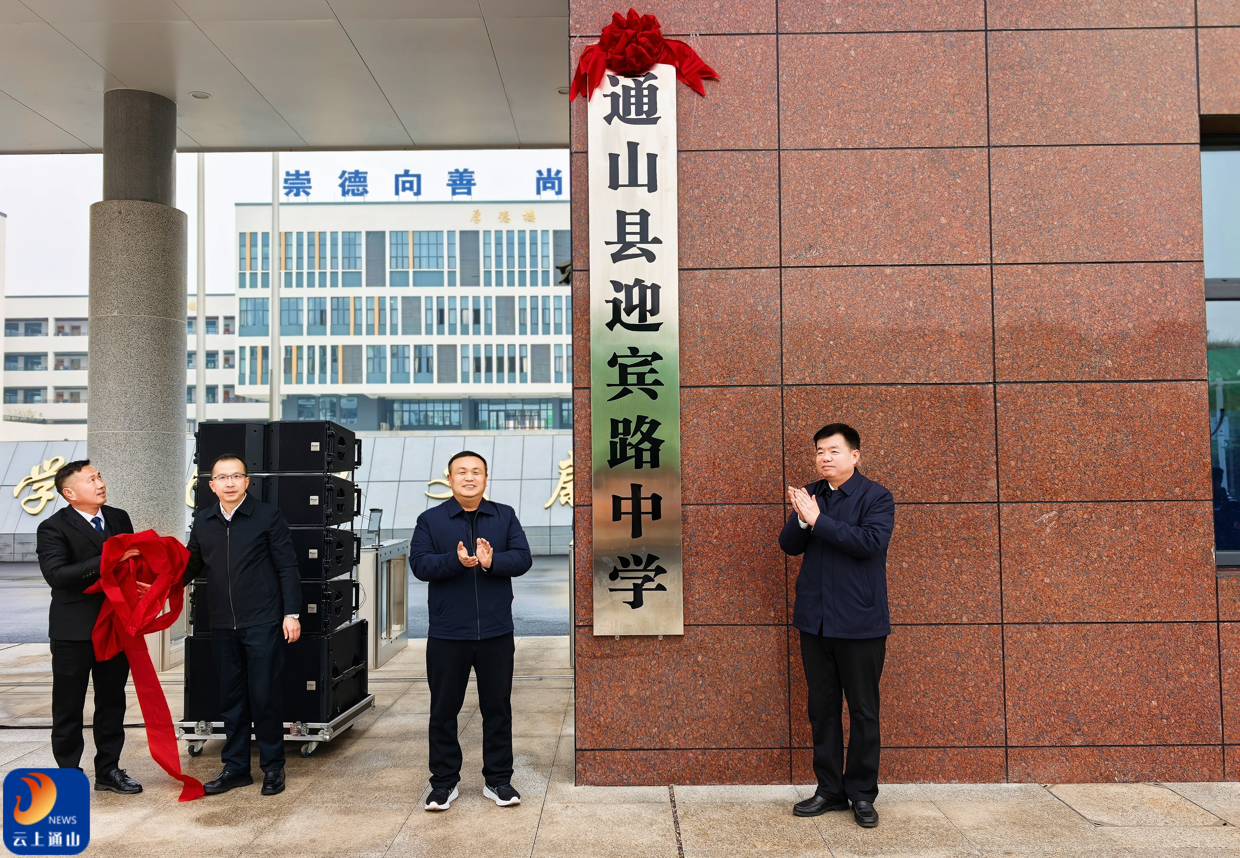 随后,吴涛、王功辉共同为迎宾路中学新校区揭牌。