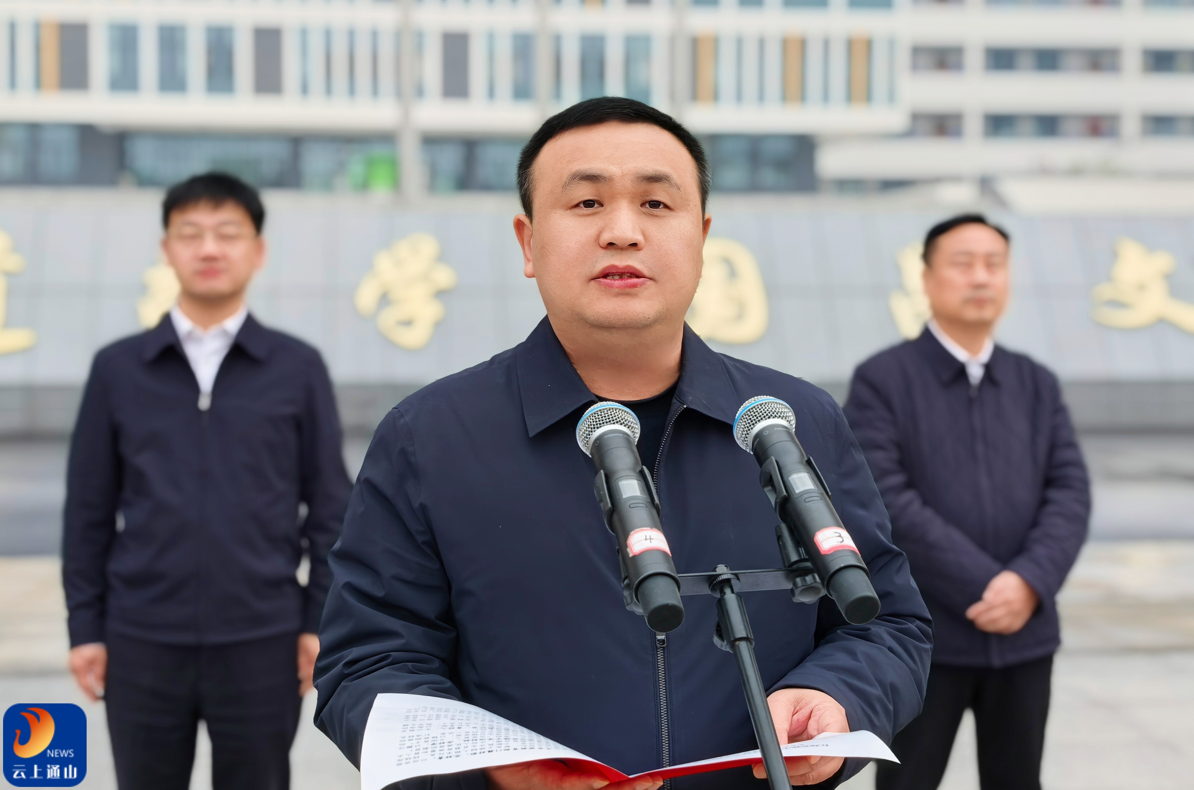 ▲王功辉代表县委、县政府致辞,向迎宾路中学如期启用表示热烈祝贺。