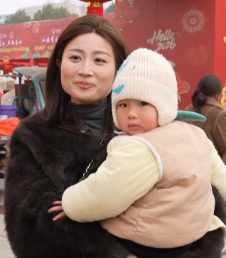 今天来到这,我看到了我们当地特色的歌舞,也有孩子们喜欢的表演,年味一下子就浓了,今天我们都很开心。
