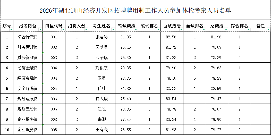 1.2026年湖北通山经济开发区招聘聘用制工作人员参加体检考察人员名单