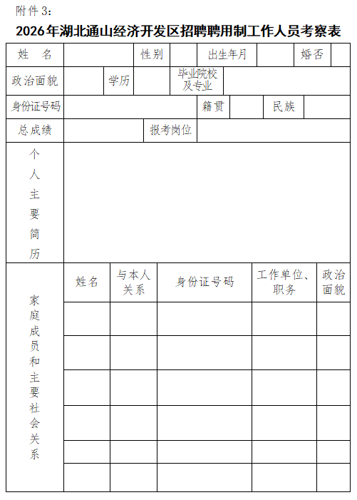 3.2026年湖北通山经济开发区招聘聘用制工作人员考察表