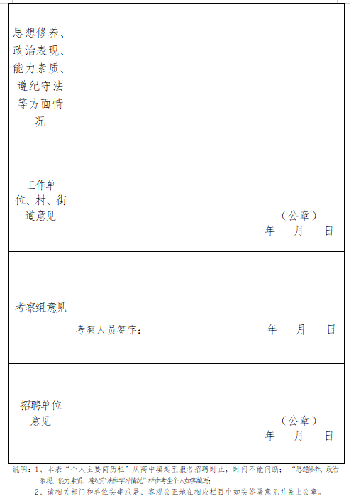 3、所有进入考察的考生,提供材料必须真实有效,如有弄虚作假,一经查实,取消聘用资格,并追究相关责任。