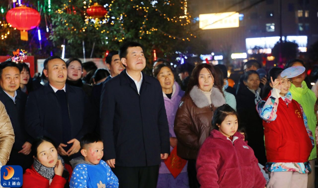 2月10日晚,通山县“文明点亮新春·实践温暖山城”非遗游园汇文明实践系列活动在县新时代文明实践中心广场正式启动。县委书记、县新时代文明实践中心主任吴涛,县委副书记、县长王功辉,县委副书记、通山经济开发区党工委书记廖旦,县人大常委会主任徐丽华,县政协主席杨烨,县领导郑佳、张敏、方声果、饶才明前往各小游园观摩活动,与广大群众一起共同感受非遗魅力、共话文明实践、共庆新春佳节。(全媒体记者 唐成 伍文俊)