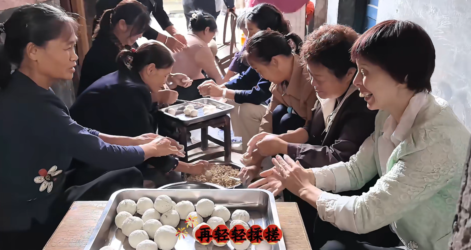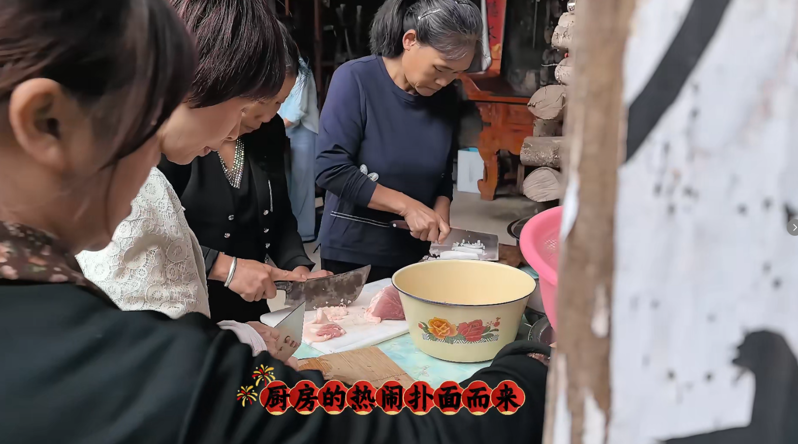 一进孙家大屋,厨房的热闹扑面而来。切菜声奏响新春序曲,五花肉、豆腐干、白萝卜搭配香菇丁、笋丁、虾米,老人们谈笑间拌匀馅料。铁锅滚烫,油香四溢,大火快炒让 “一味藏八珍” 的鲜香,成为通山人刻在骨子里的味觉记忆。