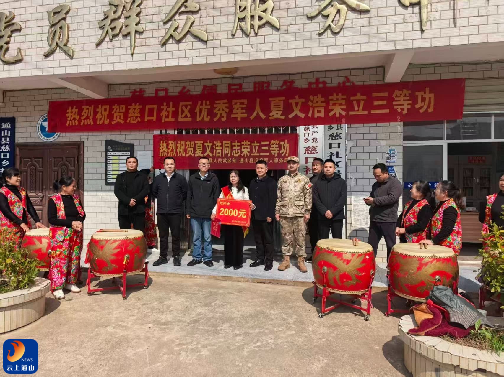2026年3月10日,慈口乡政府门前锣鼓喧天。由县退役军人事务局、武装部组成的送喜报队伍整装待发,成晓英作为工作人员参与组织,却特意回避了带队任务。当队伍来到社区时,她站在邻居、同事们的欢呼声中,看着"三等功"的证书心里兴奋又带着五味杂陈的味道。
