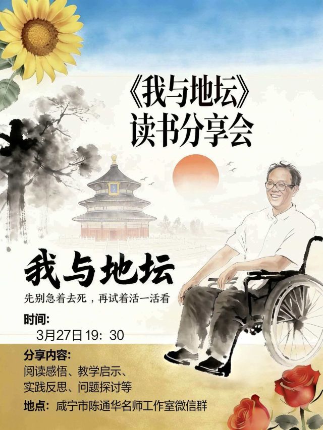 云上通山报道:(通讯员 杨玲玲)书香夜话,共读向暖。3月28日晚,咸宁市陈通华名师工作室的老师们相约云端,卸下白日教学的忙碌与疲惫,隔着屏幕赴一场温暖的读书之约,开展共读《我与地坛》线上交流活动圆满落幕。夜色静谧,书香氤氲,大家以书本为媒,以感悟为桥,在思想碰撞中滋养心灵,在彼此交流中共同成长。