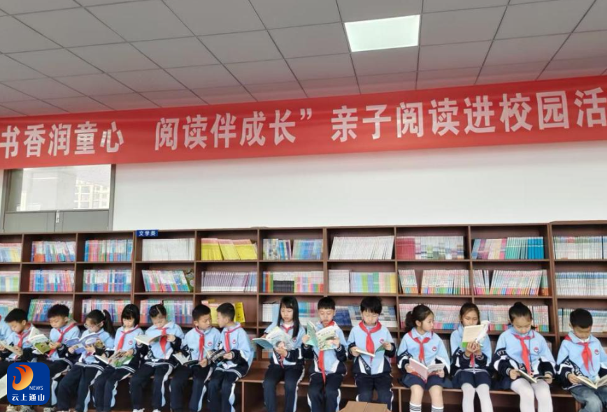 整场活动秩序井然,孩子们身着校服、佩戴红领巾,展现出良好的精神风貌;家长们全程陪伴,共同守护这份安静的阅读时光。